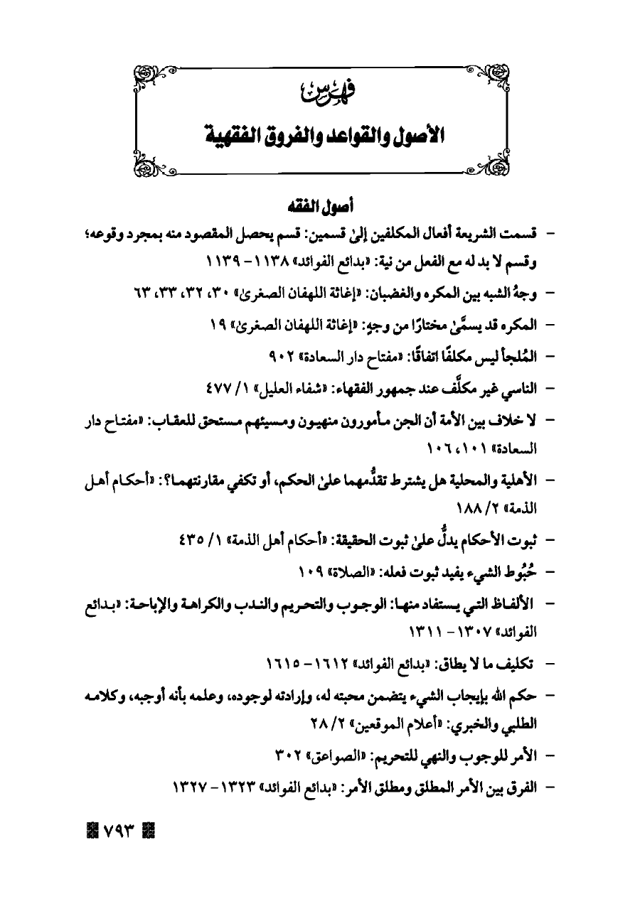 - الألفاظ التي يستفاد منها: الوجوب والتحريم والندب والكراهة والإباحة: «بدائع الفوائد» ١٣٠٧ - ١٣١١