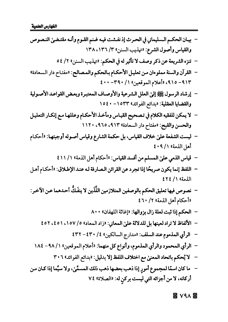 - القرآن والسنة مملوءان من تعليل الأحكام بالحكم والمصالح: «مفتاح دار السعادة» ٩١٣ - ٩١٥، «أعلام الموقعين» ١/ ٣٩٠ - ٤٠٠