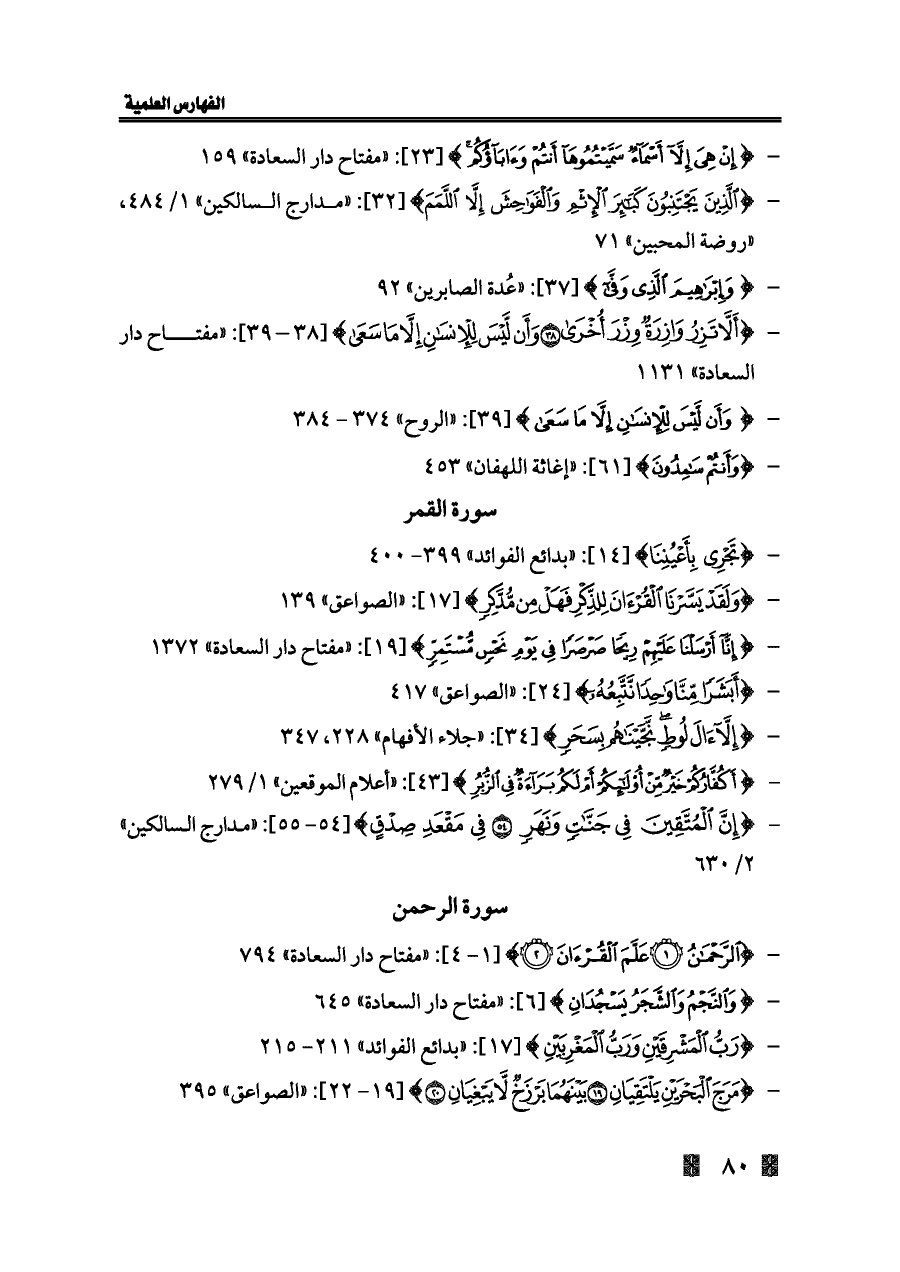 - {الرَّحْمَنُ (١) عَلَّمَ الْقُرْآنَ (٢)} [١ - ٤]: «مفتاح دار السعادة» ٧٩٤