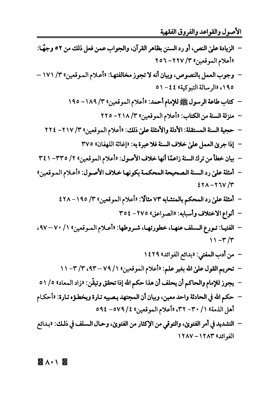 - بيان خطأ من ترك السنة زاعمًا أنها خلاف الأصول: «أعلام الموقعين» ٢/ ٣٣٥ - ٣٤١