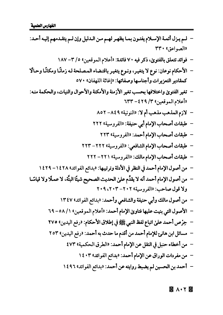 - من أصول الإمام أحمد في النظر في الأدلة وترتيبها: «بدائع الفوائد» ١٤٢٨ - ١٤٢٩