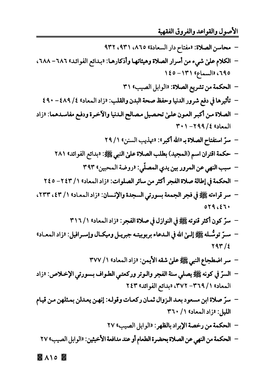 - محاسن الصلاة: «مفتاح دار السعادة» ٨٦٥، ٩٣١، ٩٣٢