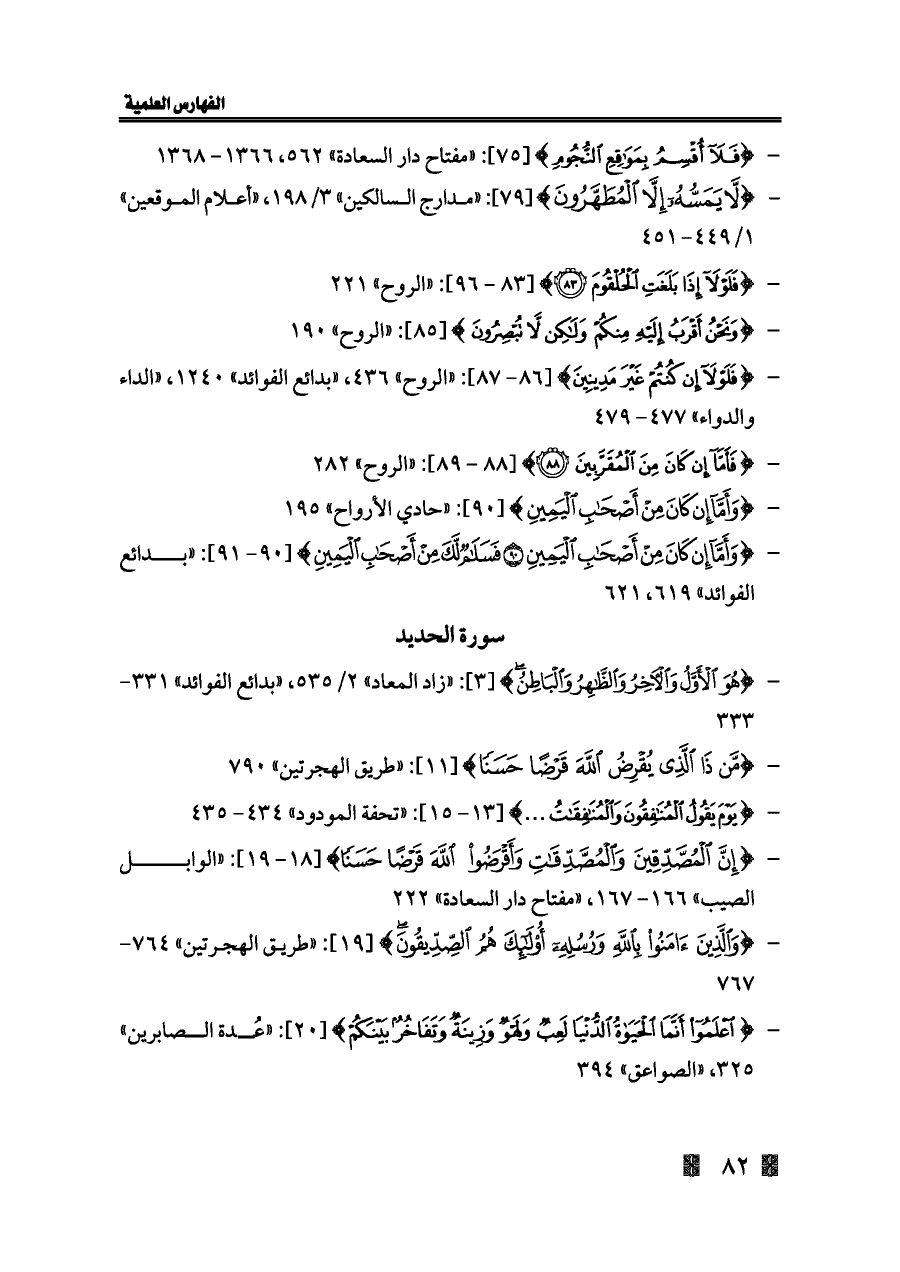 - {لَا يَمَسُّهُ إِلَّا الْمُطَهَّرُونَ} [٧٩]: «مدارج السالكين» ٣/ ١٩٨، «أعلام الموقعين» ١/ ٤٤٩ - ٤٥١