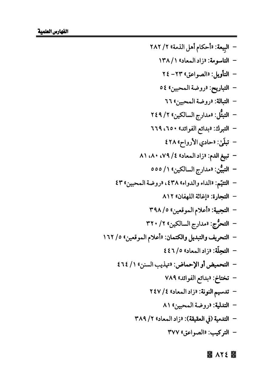 - التبرك: «بدائع الفوائد» ٦٥٠، ٦٦٩