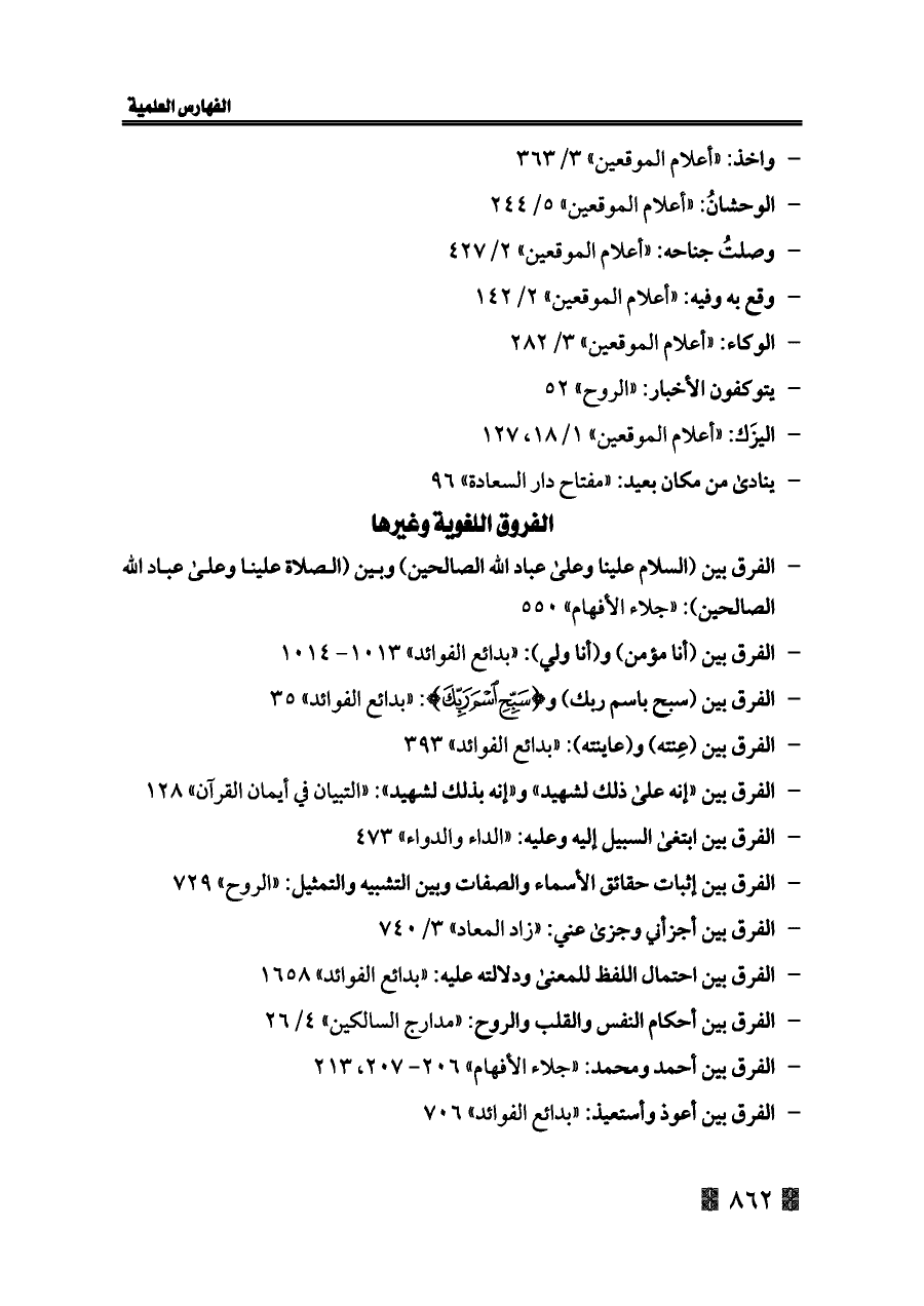 - الفرق بين (السلام علينا وعلى عباد الله الصالحين) وبين (الصلاة علينا وعلى عباد الله الصالحين): «جلاء الأفهام» ٥٥٠