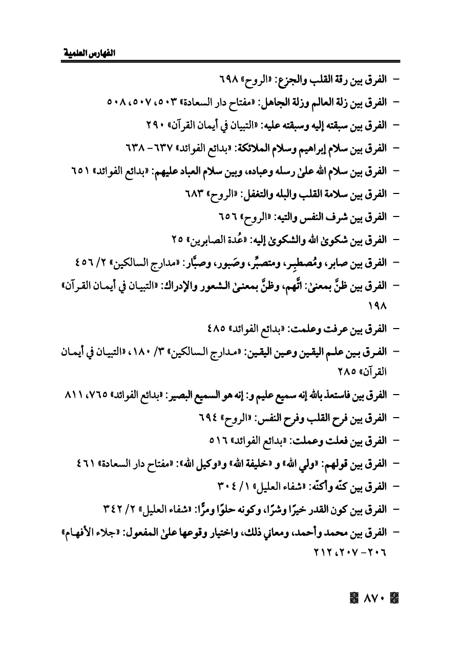 - الفرق بين سلام الله على رسله وعباده، وبين سلام العباد عليهم: «بدائع الفوائد» ٦٥١
