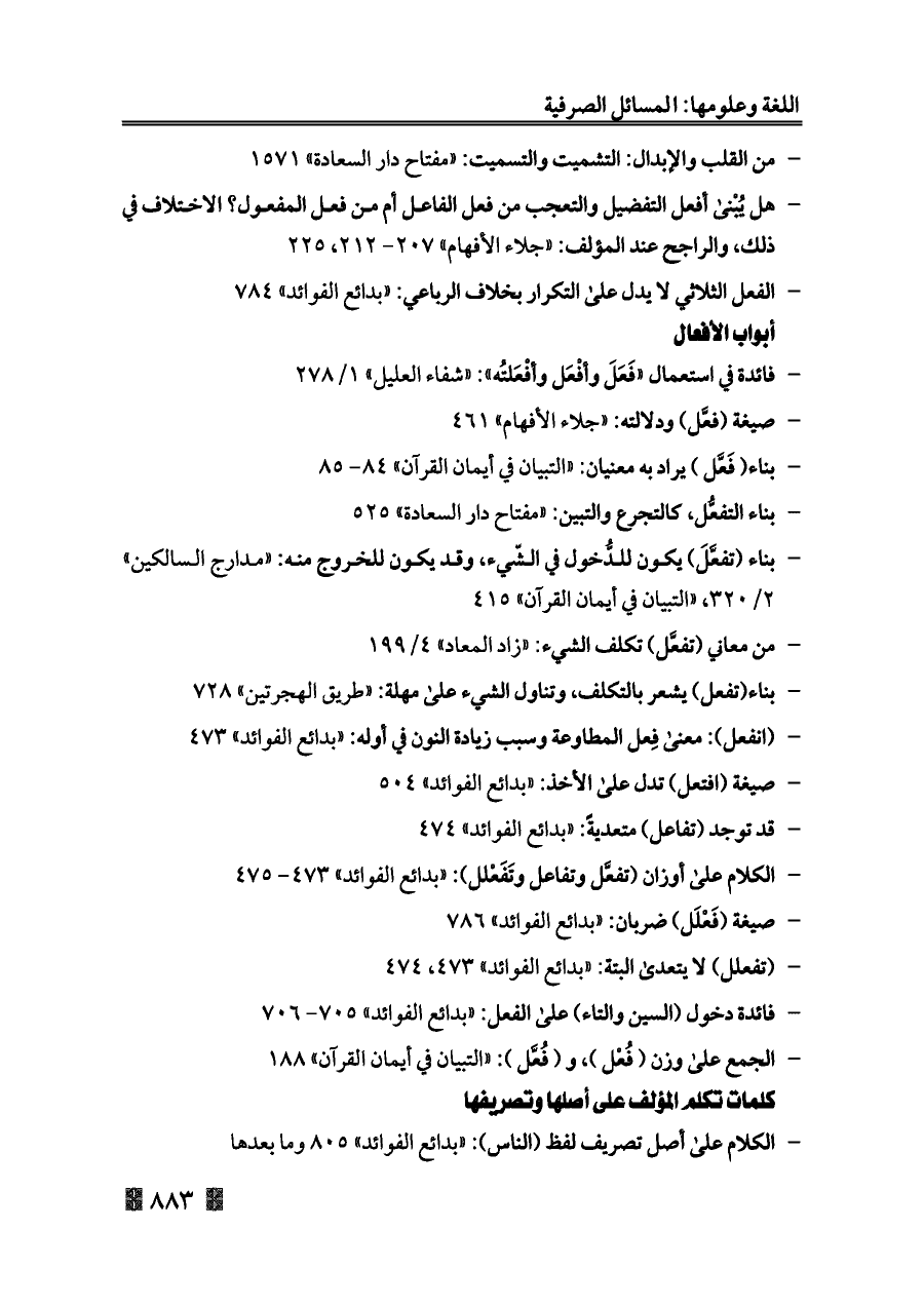 - الكلام على أوزان (تفعَّل وتفاعل وتَفَعْلل): «بدائع الفوائد» ٤٧٣ - ٤٧٥