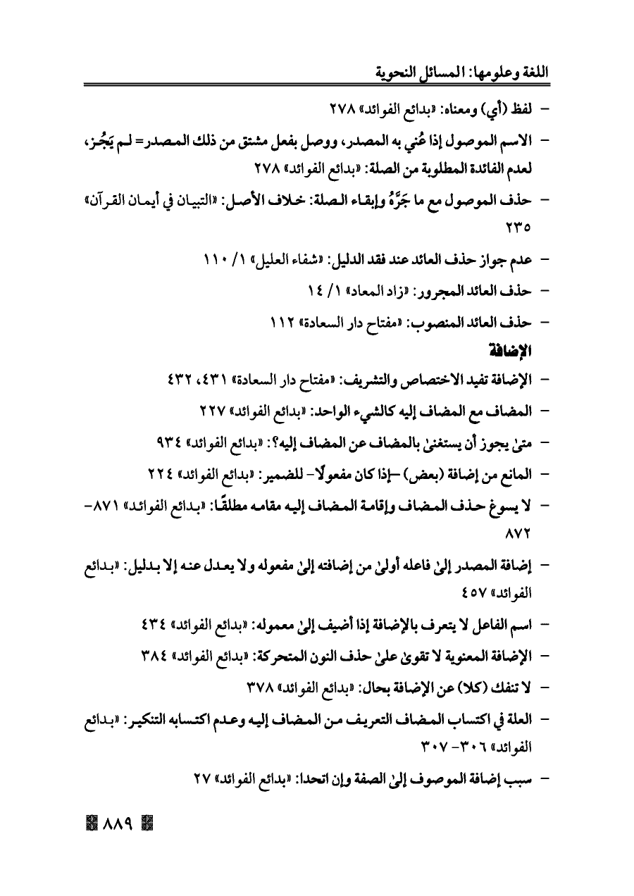 - متى يجوز أن يستغنى بالمضاف عن المضاف إليه؟: «بدائع الفوائد» ٩٣٤