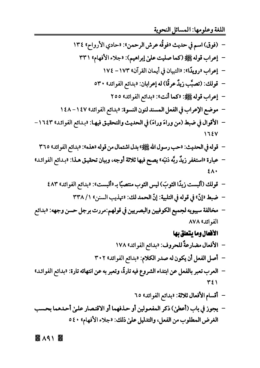 - الأفعال مضارعةٌ للحروف: «بدائع الفوائد» ١٧٨