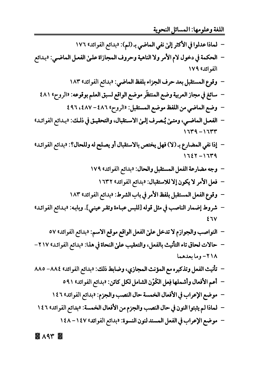 - وجه مضارعة الفعل المستقبل والحال: «بدائع الفوائد» ١٧٩