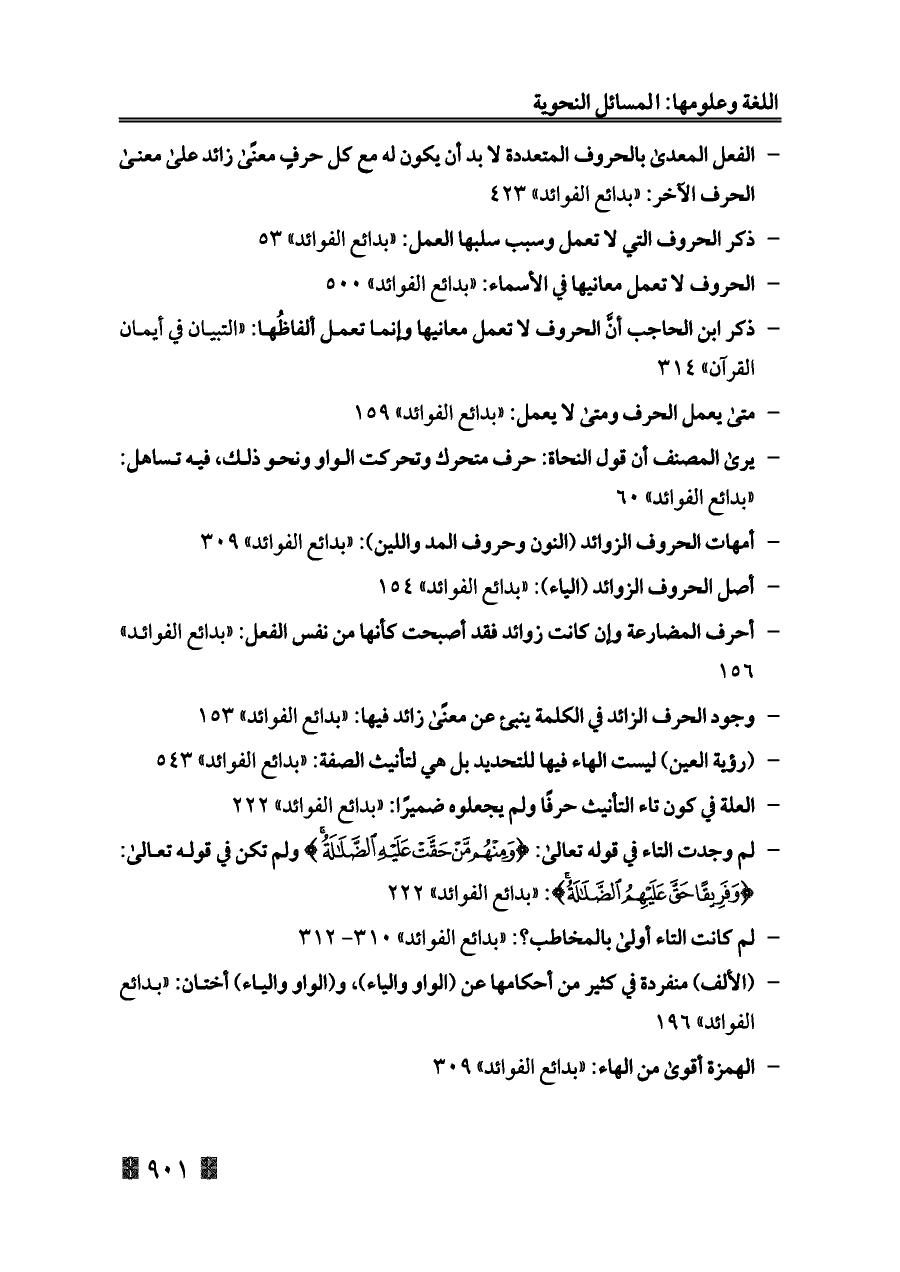 - وجود الحرف الزائد في الكلمة ينبئ عن معنًى زائد فيها: «بدائع الفوائد» ١٥٣