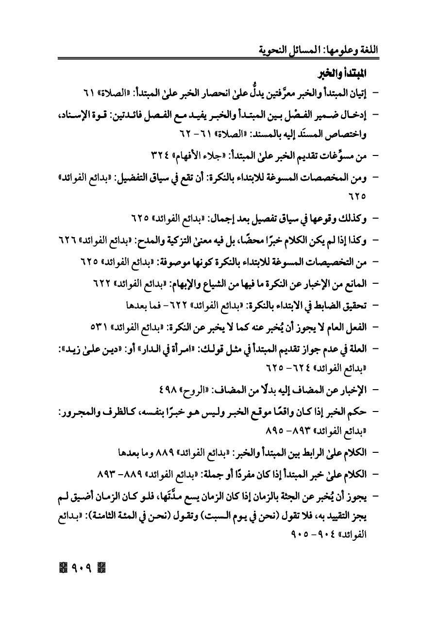 - الكلام على خبر المبتدأ إذا كان مفردًا أو جملة: «بدائع الفوائد» ٨٨٩ - ٨٩٣