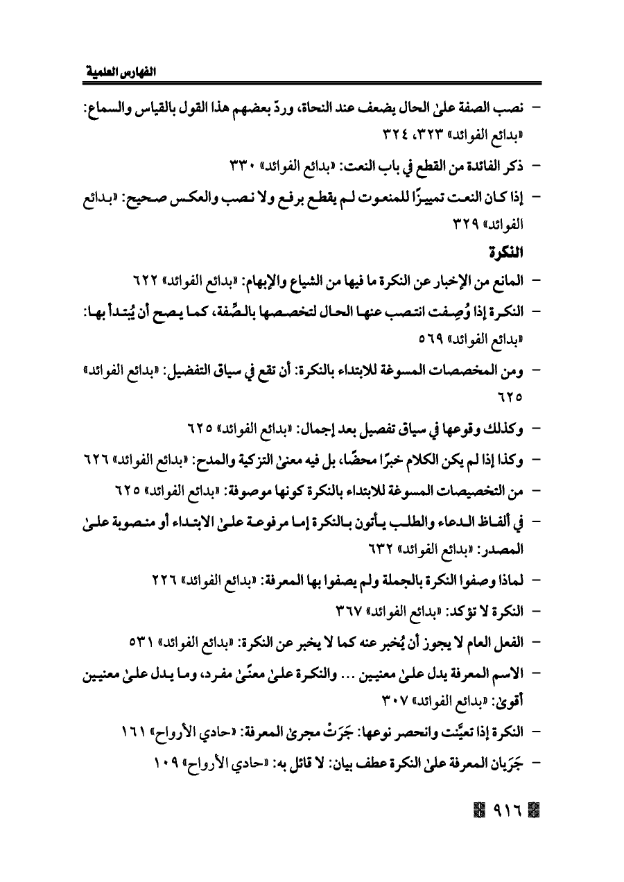 - ذكر الفائدة من القطع في باب النعت: «بدائع الفوائد» ٣٣٠