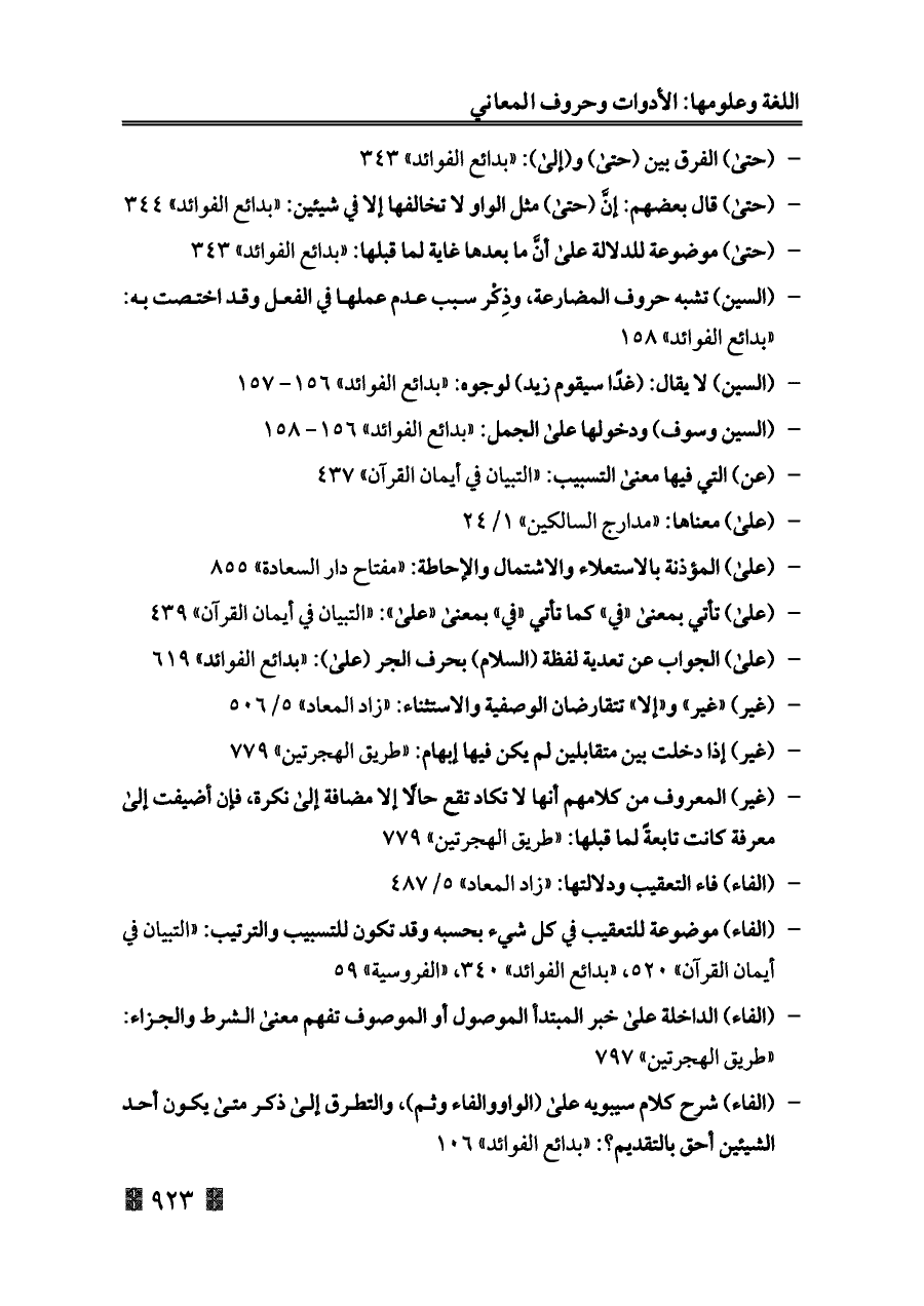 - (حتى) الفرق بين (حتى) و (إلى): «بدائع الفوائد» ٣٤٣