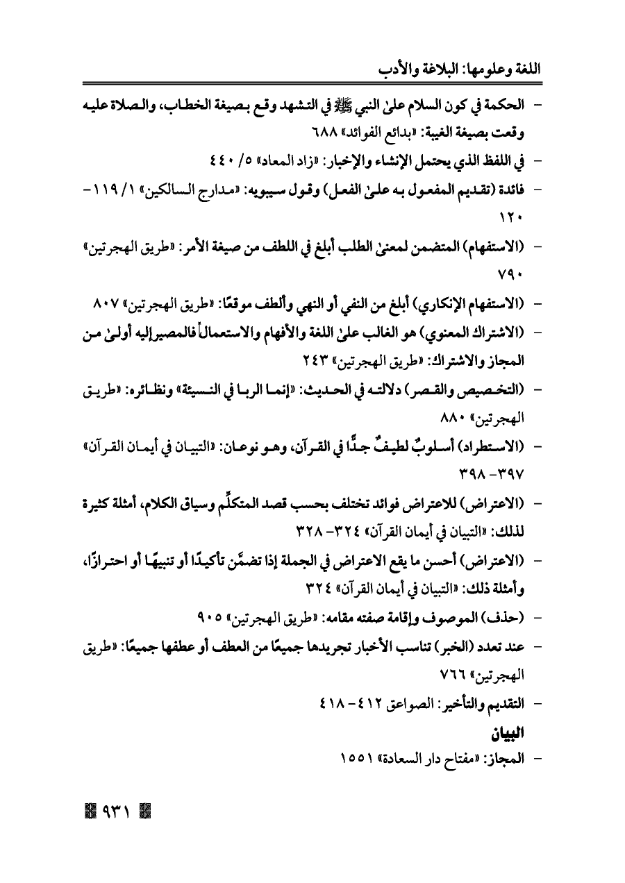 - (الاستفهام) المتضمن لمعنى الطلب أبلغ في اللطف من صيغة الأمر: «طريق الهجرتين» ٧٩٠