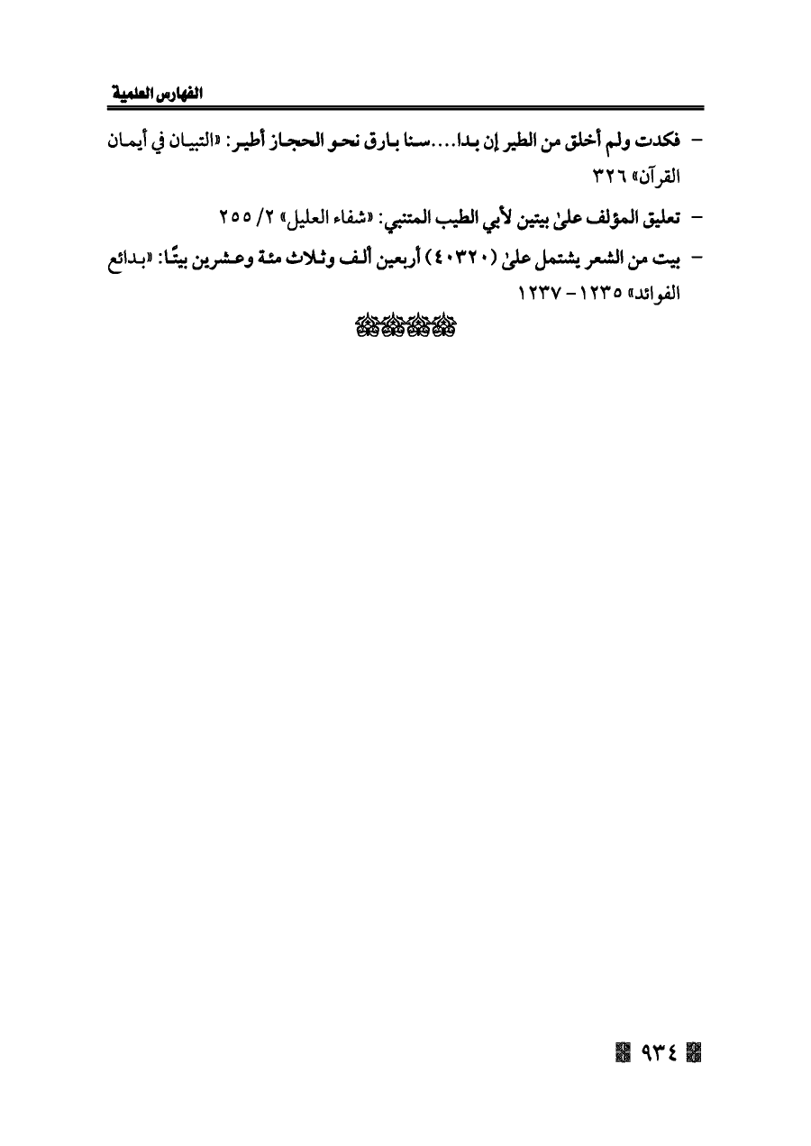 - فكدت ولم أخلق من الطير إن بدا .... سنا بارق نحو الحجاز أطير: «التبيان في أيمان القرآن» ٣٢٦