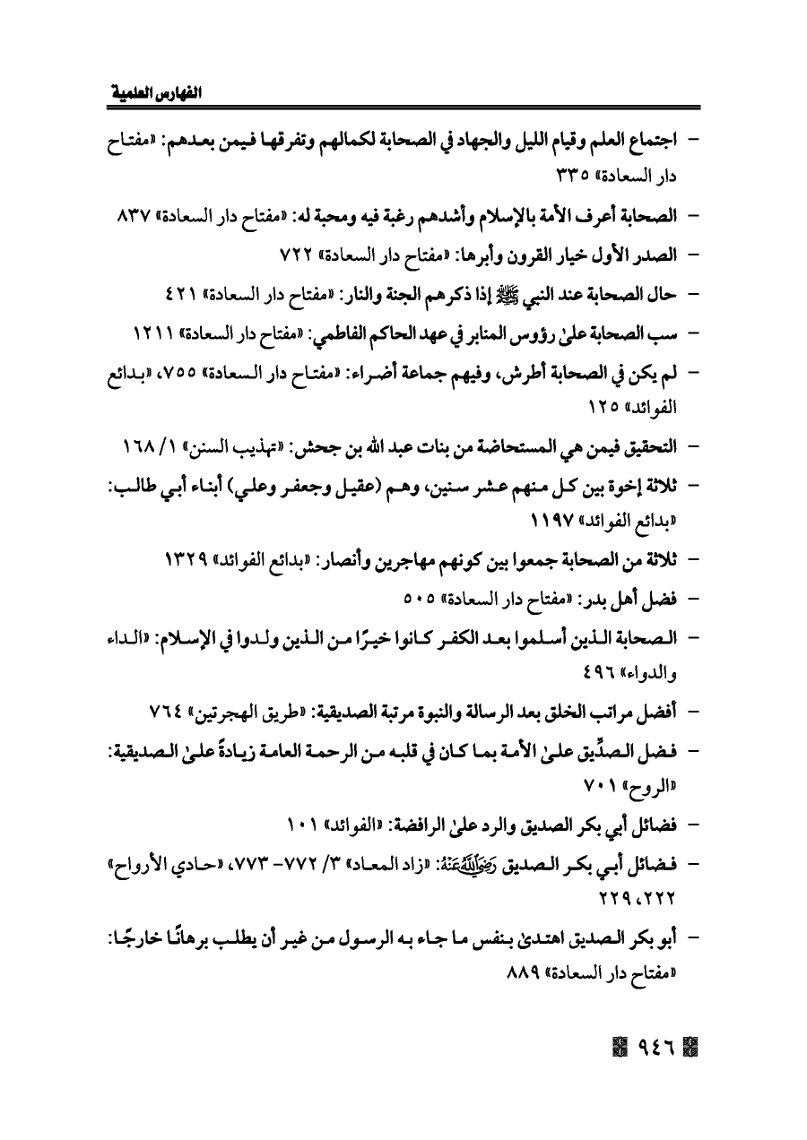 - الصحابة أعرف الأمة بالإسلام وأشدهم رغبة فيه ومحبة له: «مفتاح دار السعادة» ٨٣٧