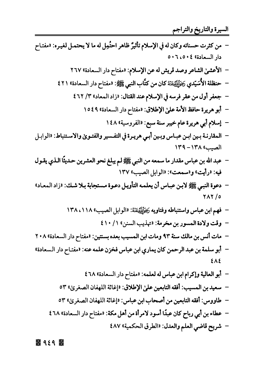 - أبو العالية وإكرام ابن عباس له لعلمه: «مفتاح دار السعادة» ٤٦٨