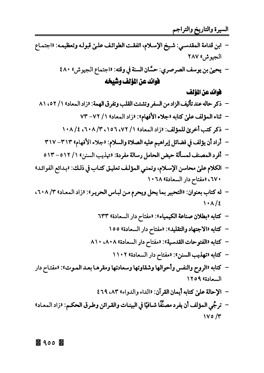 - ذكر كتب أخرى للمؤلف: «زاد المعاد» ١/ ٧٢، ١٥٦، ٣/ ٦٠٨، ٤/ ١٠٨