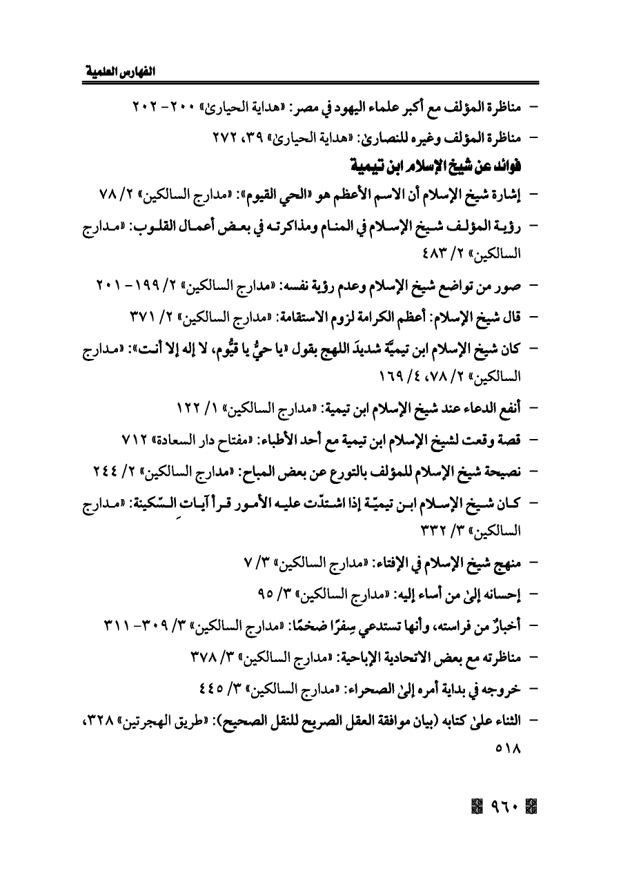 - منهج شيخ الإسلام في الإفتاء: «مدارج السالكين» ٣/ ٧