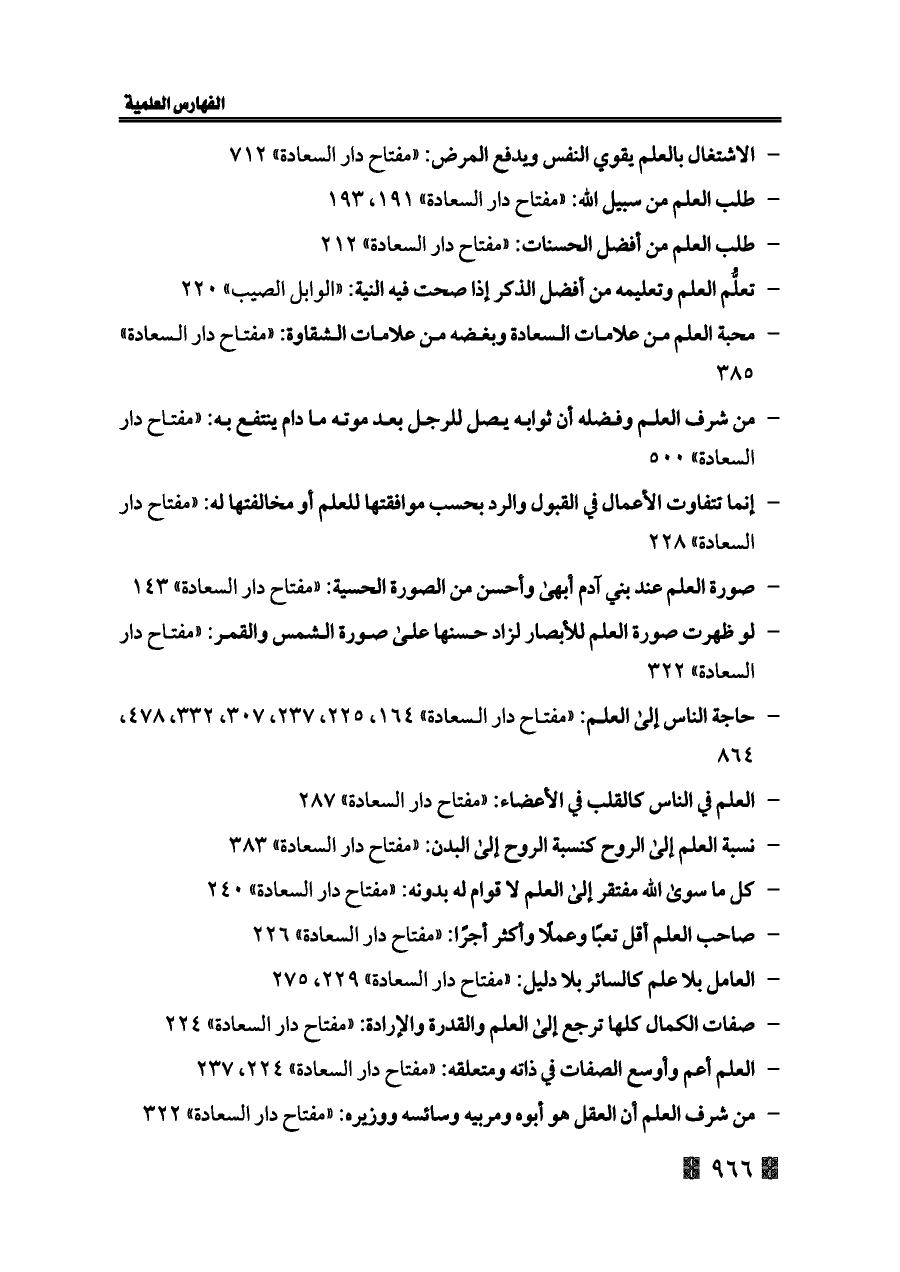 - صاحب العلم أقل تعبًا وعملًا وأكثر أجرًا: «مفتاح دار السعادة» ٢٢٦