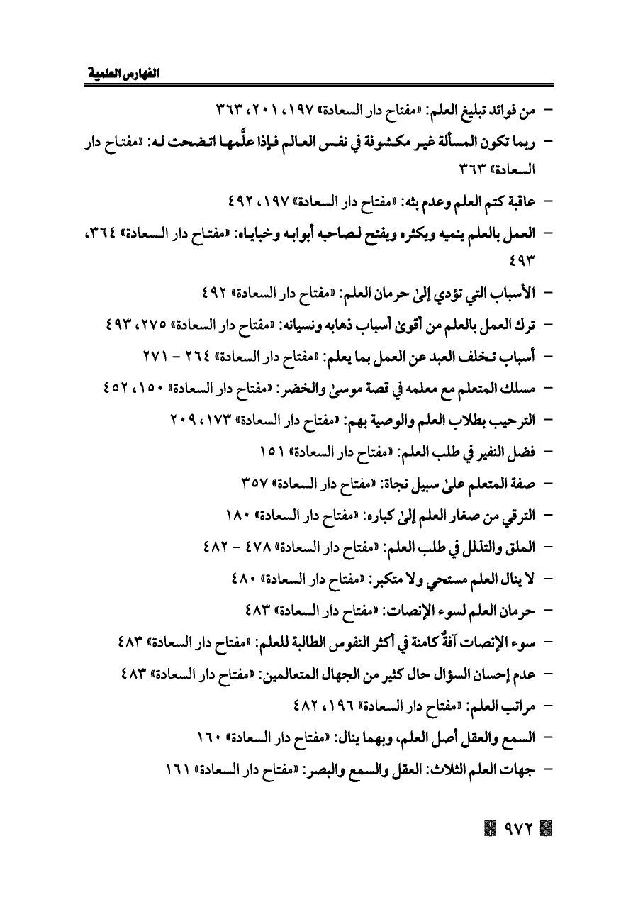 - من فوائد تبليغ العلم: «مفتاح دار السعادة» ١٩٧، ٢٠١، ٣٦٣