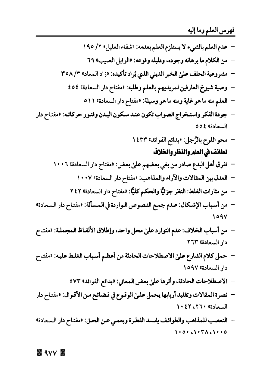 - العلم منه ما هو غاية ومنه ما هو وسيلة: «مفتاح دار السعادة» ٥١١