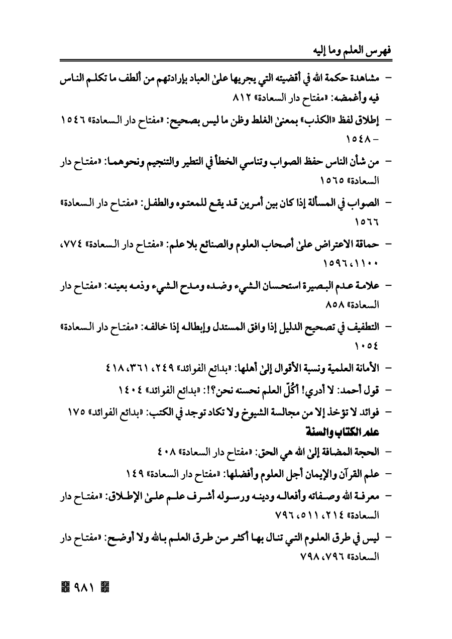 - علم القرآن والإيمان أجل العلوم وأفضلها: «مفتاح دار السعادة» ١٤٩