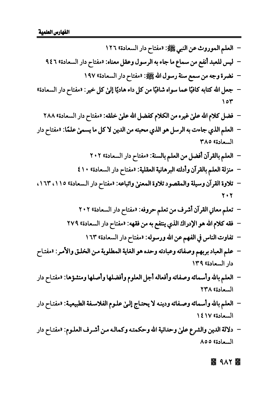 - العلم الموروث عن النبي - صلى الله عليه وسلم -: «مفتاح دار السعادة» ١٢٦