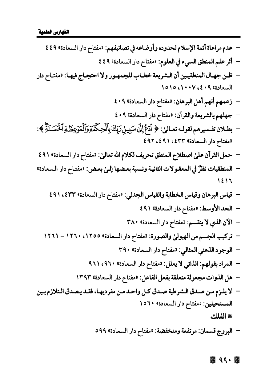 - أثر علم المنطق السيء في العلوم: «مفتاح دار السعادة» ٤٤٩