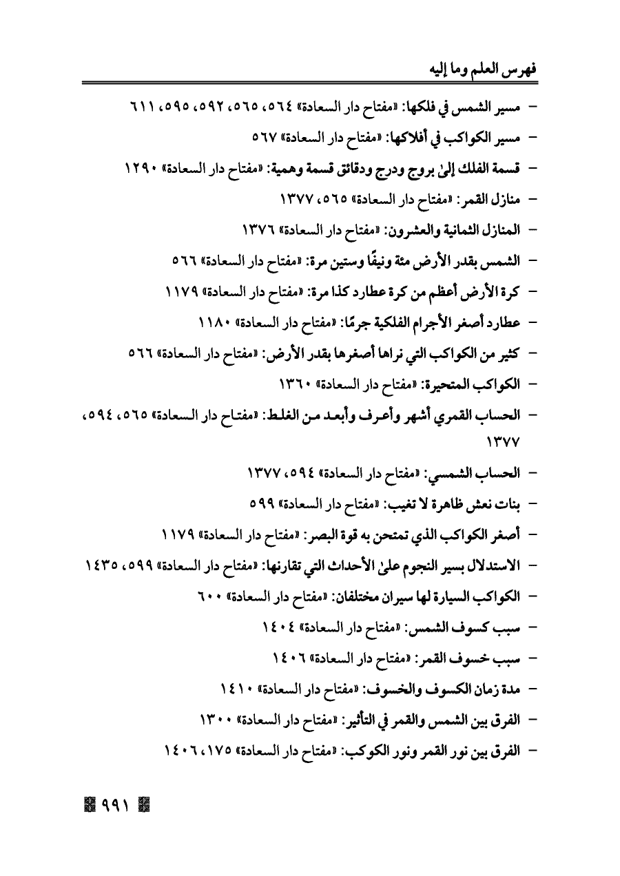 - مسير الكواكب في أفلاكها: «مفتاح دار السعادة» ٥٦٧