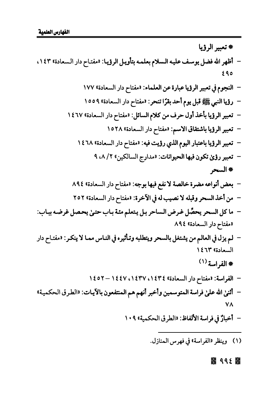 - تعبير الرؤيا باشتقاق الاسم: «مفتاح دار السعادة» ١٥٢٨