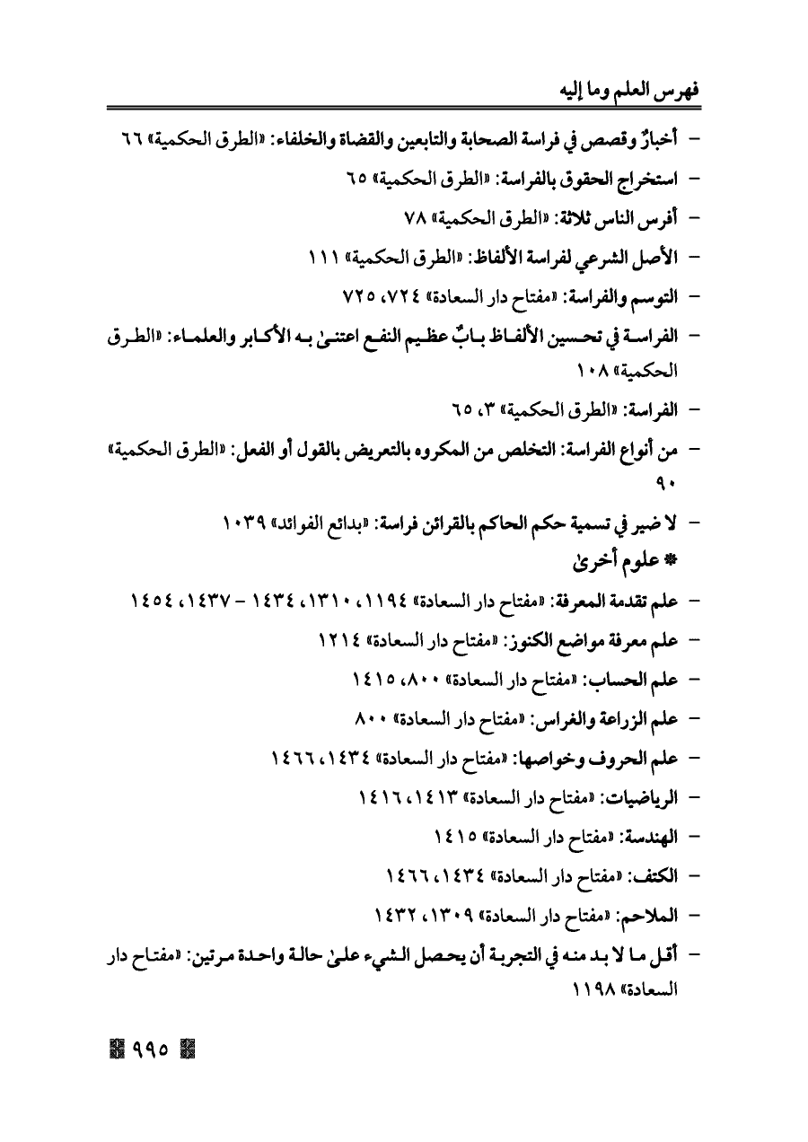 - التوسم والفراسة: «مفتاح دار السعادة» ٧٢٤، ٧٢٥