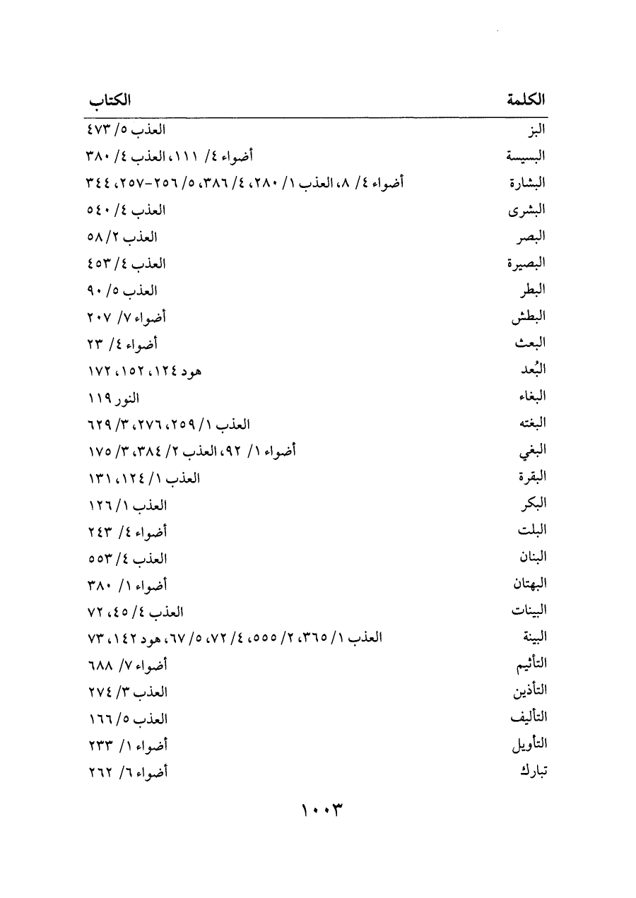 البينة ... العذب ١/ ٣٦٥، ٢/ ٥٥٥، ٤/ ٧٢، ٥/ ٦٧، هود ١٤٢، ٧٣