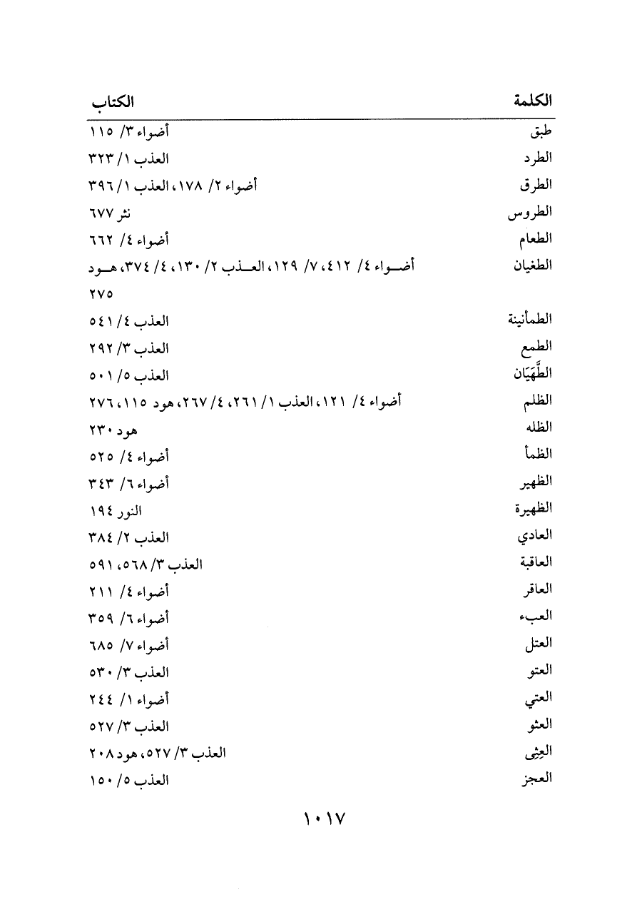 الظلم ... أضواء ٤/ ١٢١، العذب ١/ ٢٦١، ٤/ ٢٦٧، هود ١١٥، ٢٧٦