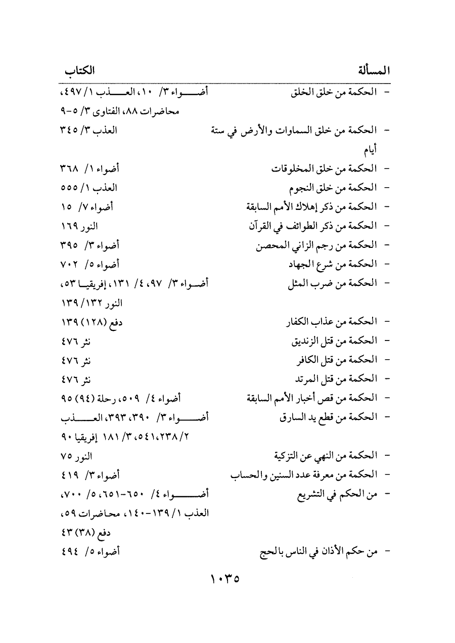 - من الحكم في التشريع ... أضواء ٤/ ٦٥٠ - ٦٥١، ٥/ ٧٠٠، العذب ١/ ١٣٩ - ١٤٠، محاضرات ٥٩، دفع (٣٨) ٤٣