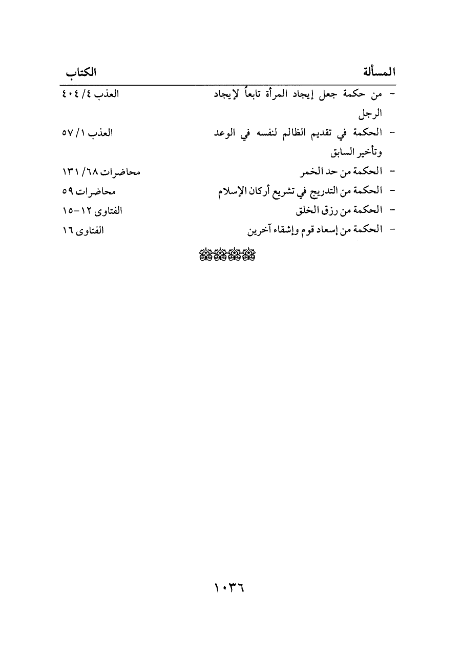 - من حكمة جعل إيجاد المرأة تابعاً لإيجاد الرجل ... العذب ٤/ ٤٠٤