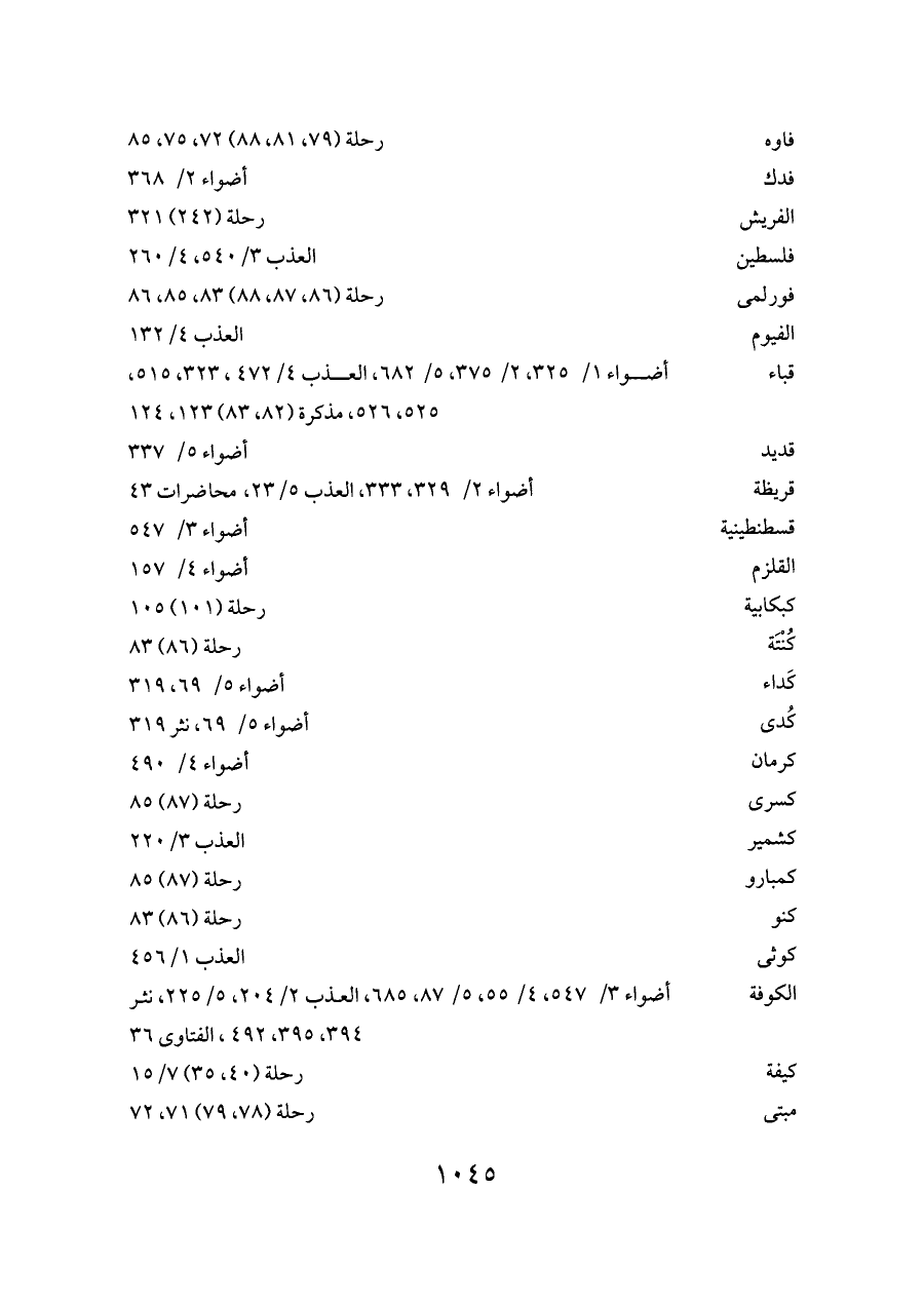 الكوفة ... أضواء ٣/ ٥٤٧، ٤/ ٥٥، ٥/ ٨٧، ٦٨٥، العذب ٢/ ٢٠٤، ٥/ ٢٢٥، نثر ٣٩٤، ٣٩٥، ٤٩٢، الفتاوى ٣٦