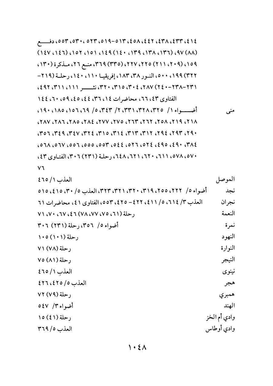 منى ... أضواء ١/ ٣٢٥، ٣٢٨، ٣٣١، ٢/ ٣٤٣، ٥/ ٦٩، ١٥٦، ١٨٥، ١٩٠، ٢١٨، ٢١٩، ٢٥٨، ٢٦٢، ٢٦٣، ٢٧٥، ٢٧٧، ٢٨٤، ٢٨٥، ٢٨٦، ٢٨٧، ٢٩٠، ٢٩٣، ٢٩٤، ٣١٢، ٣١٣، ٣١٤، ٣١٥، ٣٢٤، ٣٤٧، ٣٤٩، ٣٥٦، ٣٨٤، ٤٩٠، ٤٩٥، ٥٢٤، ٥٢٦، ٥٤٤، ٥٥٣، ٥٥٥، ٥٥٦، ٥٦٧، ٥٦٨، ٥٧٠، ٥٧٨، ٦١١، ٦٢٠، ٦٢١، ٦٤٨، رحلة (٢٣١) ٣٠٦، الفتاوى ٤٣، ٧٦