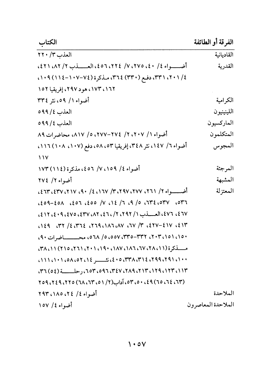 المعتزلة ... أضواء ٢/ ٢٦١، ٢٧٧، ٢٩٧، ٣/ ١٦٧، ٤/ ٩٠، ٢١٧، ٤٣٧، ٤٦٣، ٥٣٦، ٥٣٧، ٦٣٤، ٥/ ٩، ٦/ ١٤، ٧/ ٤٥٥، ٤٥٦، ٤٥٨ - ٤٥٩، ٤٦٧، ٤٧٦، العذب ١/ ٢٩٢، ٢/، ٤٦، ٨٢، ٤٣٧، ٤٧٥، ٤٠٩، ٤١٢، ٤١٣، ٤١٧ - ٤٢٧، ٣/ ٦٧، ٨٧، ١٨٦، ٢٦٩، ٣٦٤، ٤/ ٣٢، ١٤٩، ١٥٠، ١٥١، ٢٠٣، ٣٣٢ - ٣٣٥، ٥٥٧، ٥/ ٥٦٨، محاضرات ٩٠، مذكرة (١١، ٢٨، ٦٧، ١٨٦، ١٨٧، ١٩٠، ٢٠١، ٢٦١، ٢١٥) ١١، ٣٨، ١٠٠، ٢٩١، ٢٩٩، ٣١٤، ٣٣٨، ٤٠٥، نثر ١٤، ٥٢، ٥٨، ١٠١، ١١١، ١١٣، ١٢٣، ١٢٩، ٢١٣، ٢٨٩، ٣٤٧، ٥٩٦، ٦٥٣، رحلة (٥٤) ٣٦، (٦٣، ٦٤، ٦٥) ٤٩، ٥٠، ٥٣، آداب (٢/ ٥١، ٦٣، ٦٨) ٢٢٥، ٢٤٩، ٢٥٩