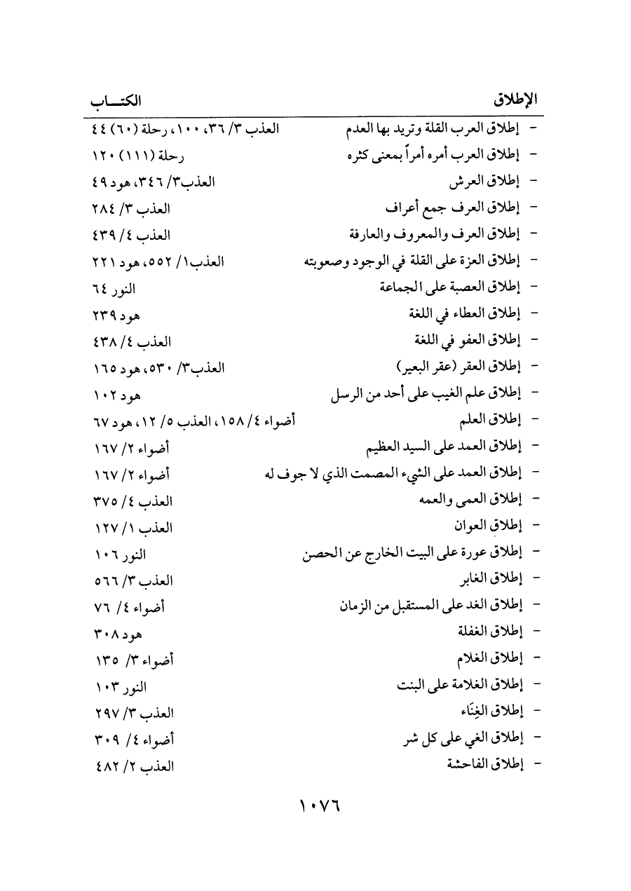 - إطلاق العرب القلة وتريد بها العدم ... العذب ٣/ ٣٦، ١٠٠، رحلة (٦٠) ٤٤