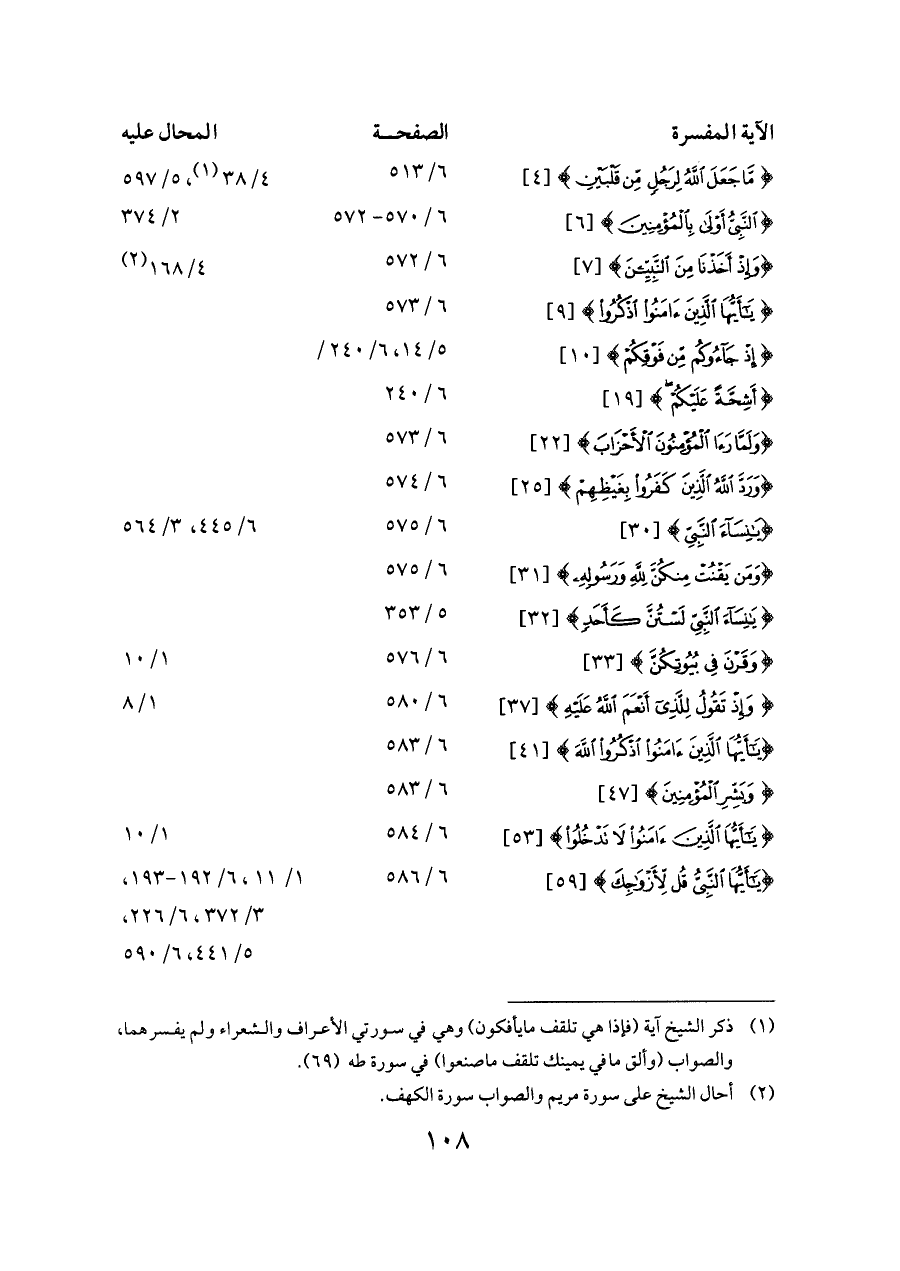 (¬٢) أحال الشيخ على سورة مريم والصواب سورة الكهف.