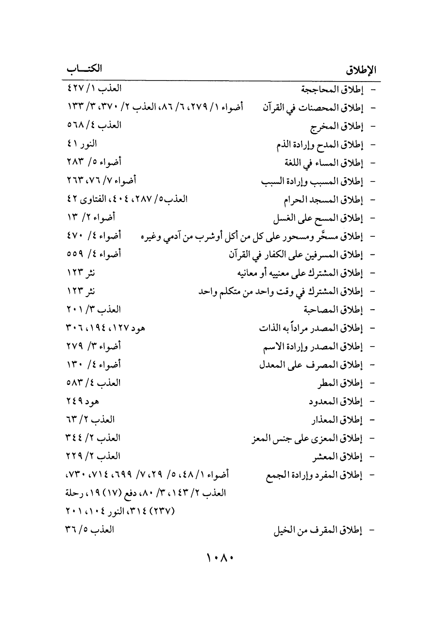 - إطلاق المفرد وإرادة الجمع ... أضواء ١/ ٤٨، ٥/ ٢٩، ٧/ ٦٩٩، ٧١٤، ٧٣٠، العذب ٢/ ١٤٣، ٣/ ٨٠، دفع (١٧) ١٩، رحلة (٢٣٧) ٣١٤، النور ١٠٤، ٢٠١