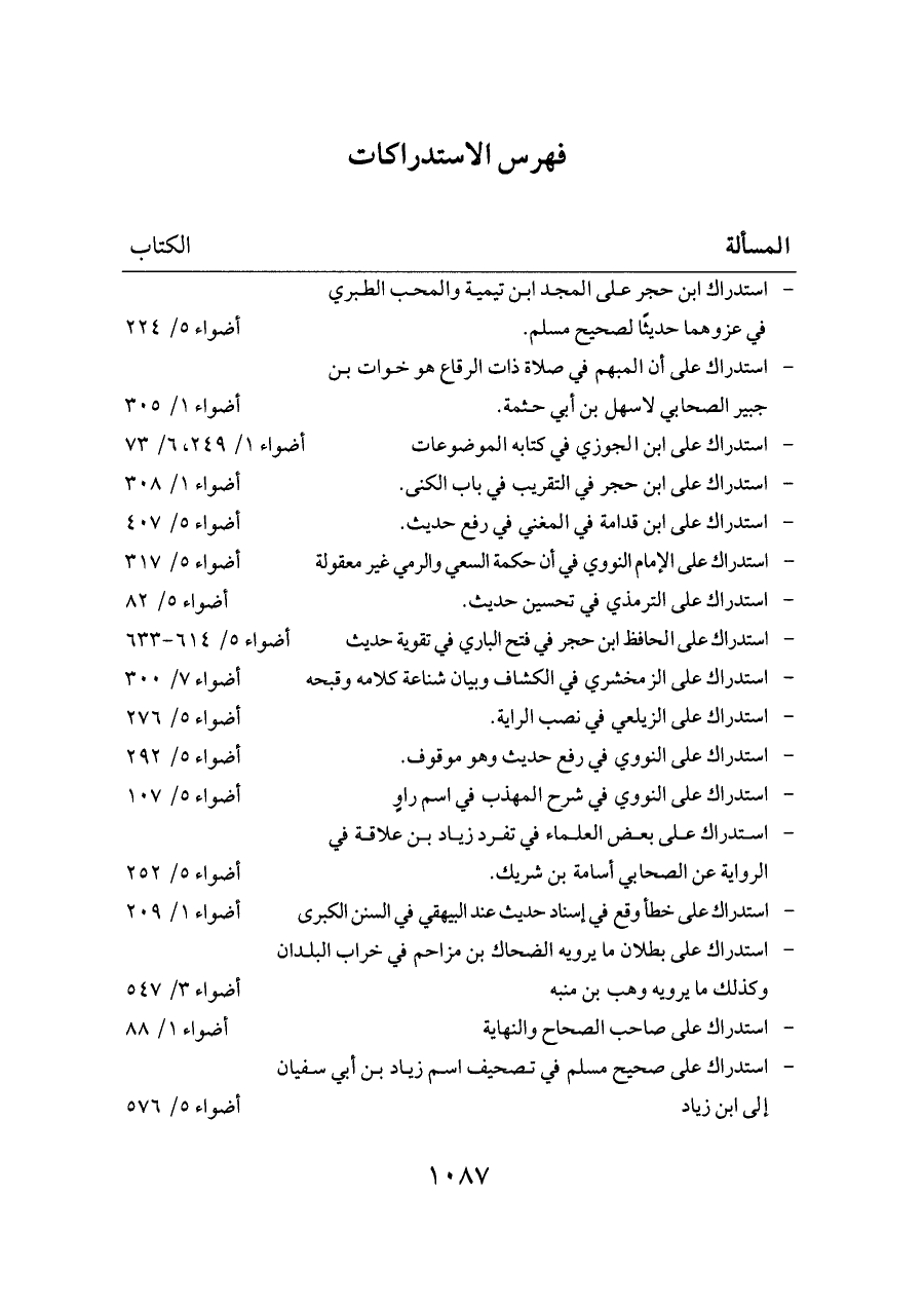 - استدراك على ابن حجر في التقريب في باب الكنى. ... أضواء ١/ ٣٠٨