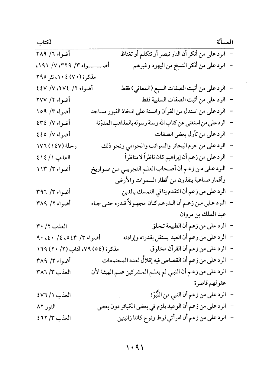 - الرد على من أنكر النسخ من اليهود وغيرهم ... أضواء ٣/ ٣٢٩، ٧/ ١٩١، مذكرة (٧٠) ١٠٤، نثر ٢٩٥