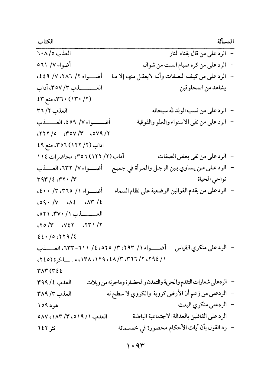 - الرد على من يقدم القوانين الوضعية على نظام السماء ... أضواء ١/ ٣٦٥، ٣/ ٤٠٠، ٤/ ٨٣، ٨٤، ٧/ ٥٩٠، العذب ١/ ٣٧٠، ٥٢١، ٢/ ٢٣١، ٧٤٢، ٣/ ٢٥، ٤/ ٢٢٩، ٥/ ٤٤٠