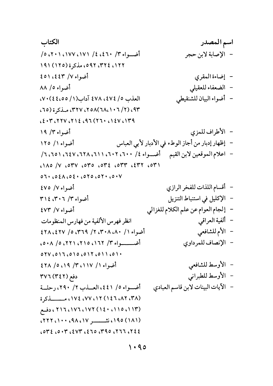 - الإنصاف للمرداوي ... أضواء ٣/ ١٦٢، ٢١٥، ٢٢١، ٥/ ٥٠٨، ٥١٠، ٥١١، ٥١٢، ٥١٥، ٥١٦، ٥٢٧