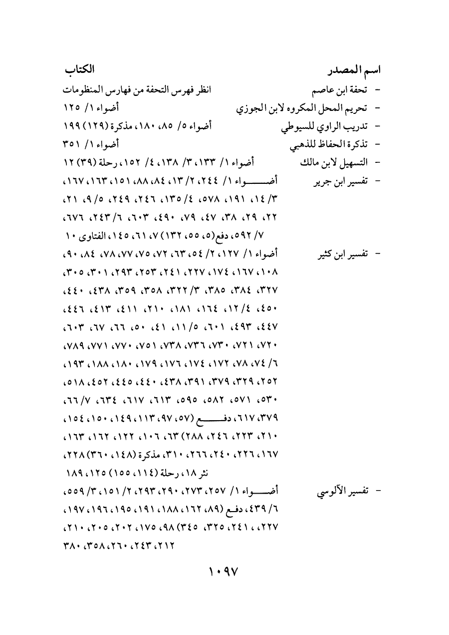 - تفسير ابن كثير ... أضواء ١/ ١٢٧، ٢/ ٥٤، ٦٣، ٧٢، ٧٥، ٧٧، ٧٨، ٨٤، ٩٠، ١٠٨، ١٦٧، ١٧٤، ٢٢٧، ٢٤١، ٢٥٣، ٢٩٣، ٣٠١، ٣٠٥، ٣٢٧، ٣٨٤، ٣٨٥، ٣/ ٣٢٢، ٣٥٨، ٣٥٩، ٤٣٨، ٤٤٠، ٤٥٠، ٤/ ١٢، ١٦٤، ١٨١، ٢١٠، ٤١١، ٤١٣، ٤٤٦، ٤٤٧، ٤٩٣، ٦٠١، ٥/ ١١، ٤١، ٥٠، ٦٦، ٦٧، ٦٠٣، ٧٢٠، ٧٢١، ٧٣٠، ٧٣٦، ٧٣٨، ٧٥١، ٧٧٠، ٧٧١، ٧٨٩، ٦/ ٧٤، ٧٨، ١٧٢، ١٧٤، ١٧٦، ١٧٩، ١٨٠، ١٨٨، ١٩٣، ٢٥٢، ٣٢٩، ٣٧٩، ٣٩١، ٤٣٨، ٤٤٠، ٤٤٥، ٤٥٢، ٥١٨، ٥٣٠، ٥٧١، ٥٨٢، ٥٩٥، ٦١٣، ٦١٧، ٦٣٤، ٧/ ٦٦، ٣٧٩، ٦١٧، دفع (٥٧، ٩٧، ١١٣، ١٤٩، ١٥٠، ١٥٤، ٢١٠، ٢٢٣، ٢٤٦، ٢٨٨) ٦٣، ١٠٦، ١٢٢، ١٦٢، ١٦٣، ١٦٧، ٢٢٦، ٢٤٠، ٢٦٦، ٣١٠، مذكرة (١٤٨، ٣٦٠) ٢٢٨، نثر ١٨، رحلة (١١٤، ١٥٥) ١٢٥، ١٨٩