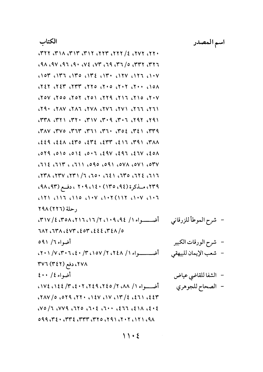- شرح الموطأ للزرقاني ... أضواء ١/ ٩٤، ١٠٩، ٢/ ١٦، ٢١٦، ٣٥٨، ٤/ ٣١٧، ٥/ ٣٤٨، ٤٤٤، ٤٥٣، ٤٧٣، ٦٣٨، ٦٨٢