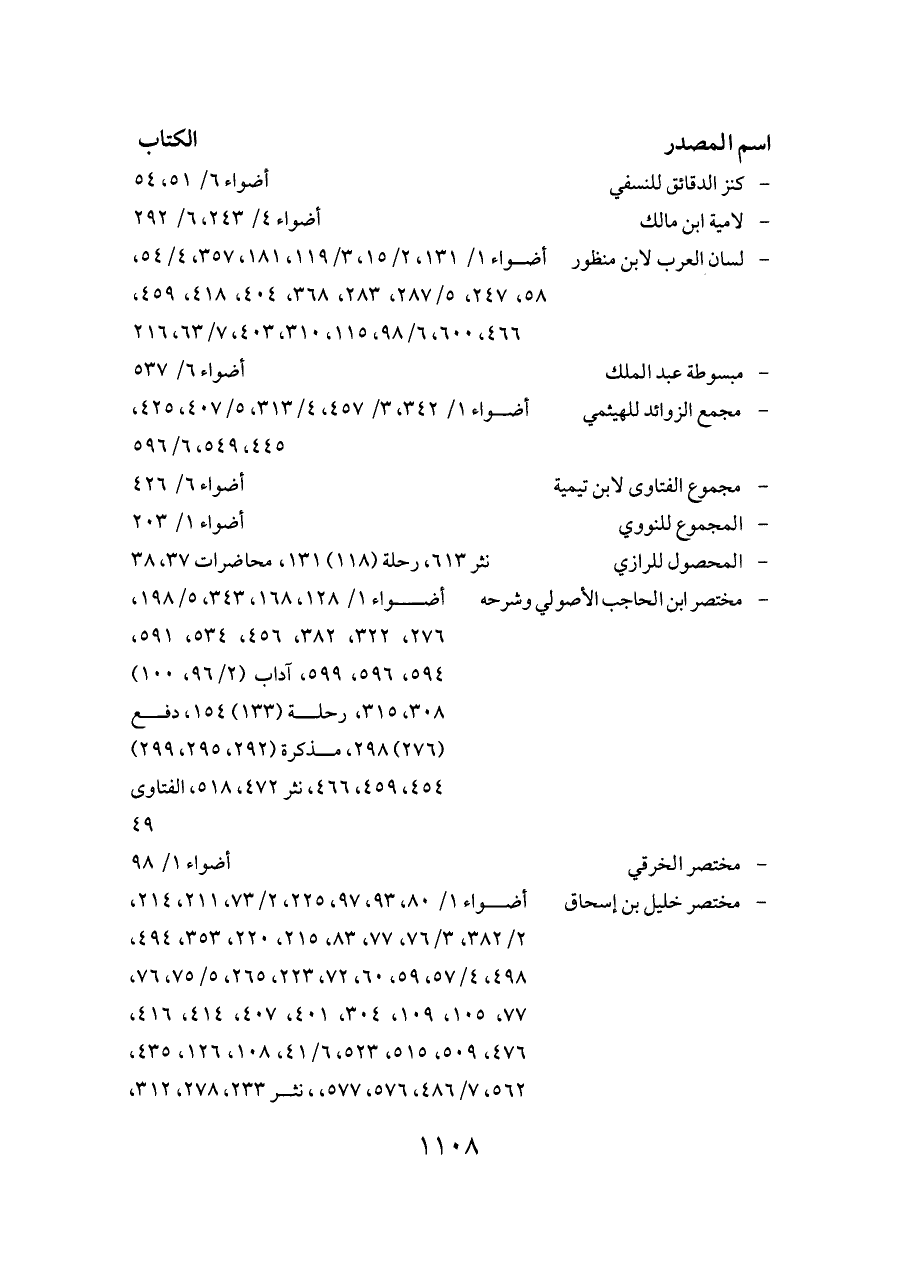 - مختصر ابن الحاجب الأصولي وشرحه ... أضواء ١/ ١٢٨، ١٦٨، ٣٤٣، ٥/ ١٩٨، ٢٧٦، ٣٢٢، ٣٨٢، ٤٥٦، ٥٣٤، ٥٩١، ٥٩٤، ٥٩٦، ٥٩٩، آداب (٢/ ٩٦، ١٠٠) ٣٠٨، ٣١٥، رحلة (١٣٣) ١٥٤، دفع (٢٧٦) ٢٩٨، مذكرة (٢٩٢، ٢٩٥، ٢٩٩) ٤٥٤، ٤٥٩، ٤٦٦، نثر ٤٧٢، ٥١٨، الفتاوى ٤٩